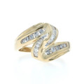 Yellow Gold Diamond Bypass Ring 14k Round Brilliant & Baguette .33ctw