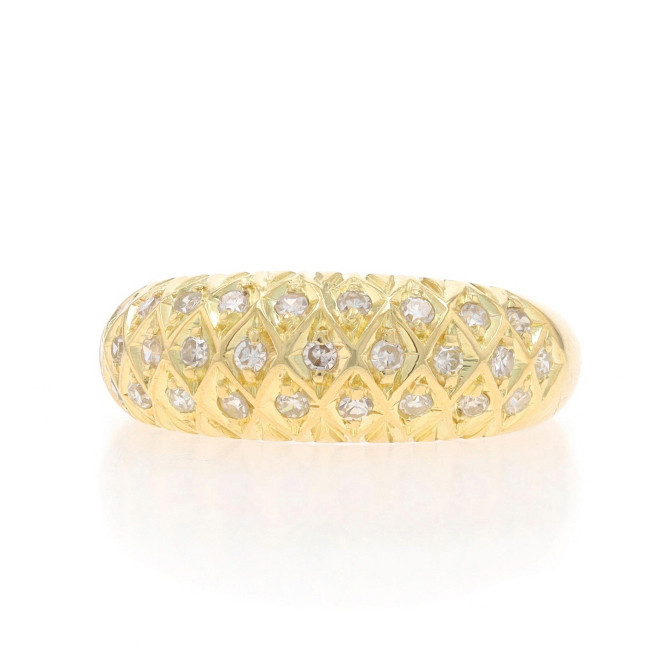 Yellow Gold Diamond Cluster Band - 18k Single .33ctw Quilted Lattice Ring