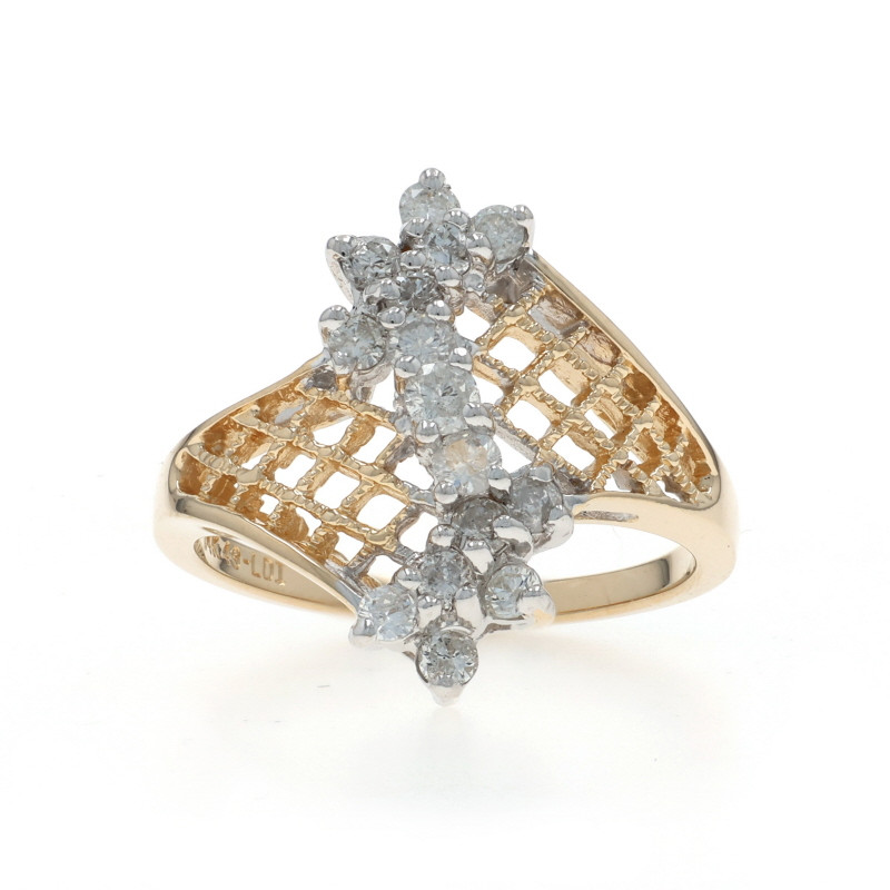 Yellow Gold Diamond Cluster Bypass Ring - 14k Round .50ctw Floral Lattice