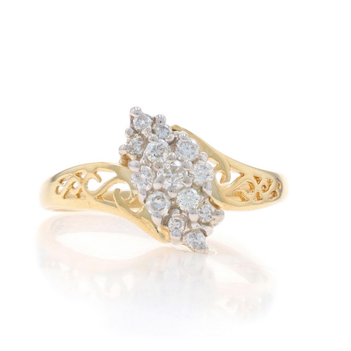 Yellow Gold Diamond Cluster Bypass Ring - 14k Round Brilliant .50ctw Waterfall