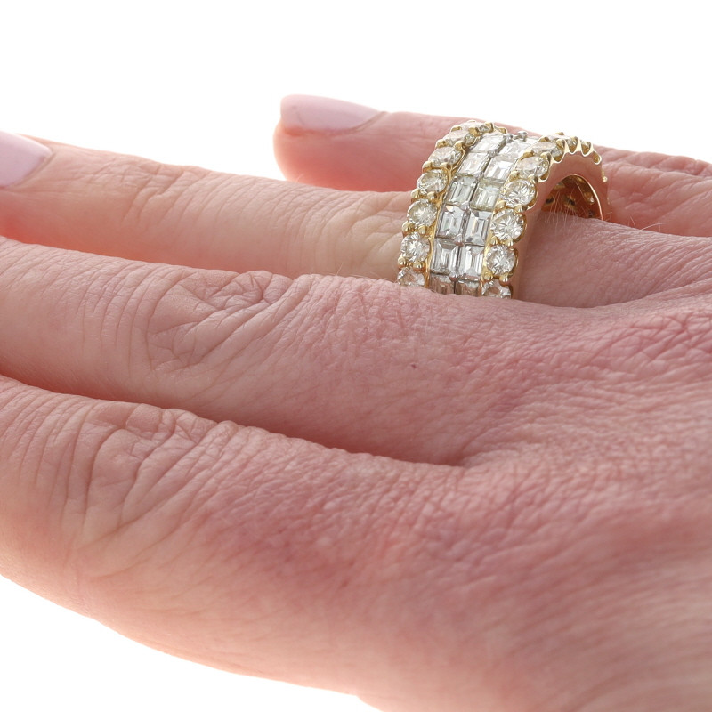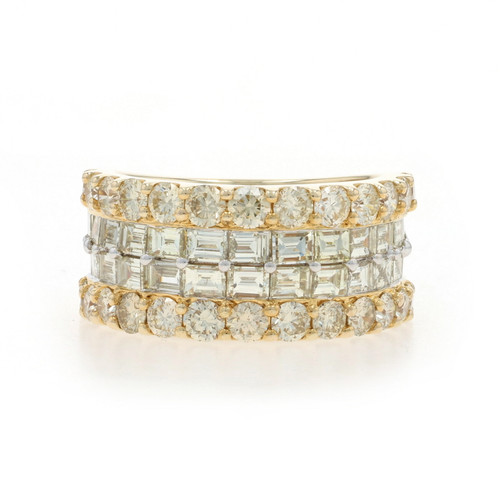 Yellow Gold Diamond Cluster Cocktail Band - 10k Baguette & Round 5.00ctw Ring