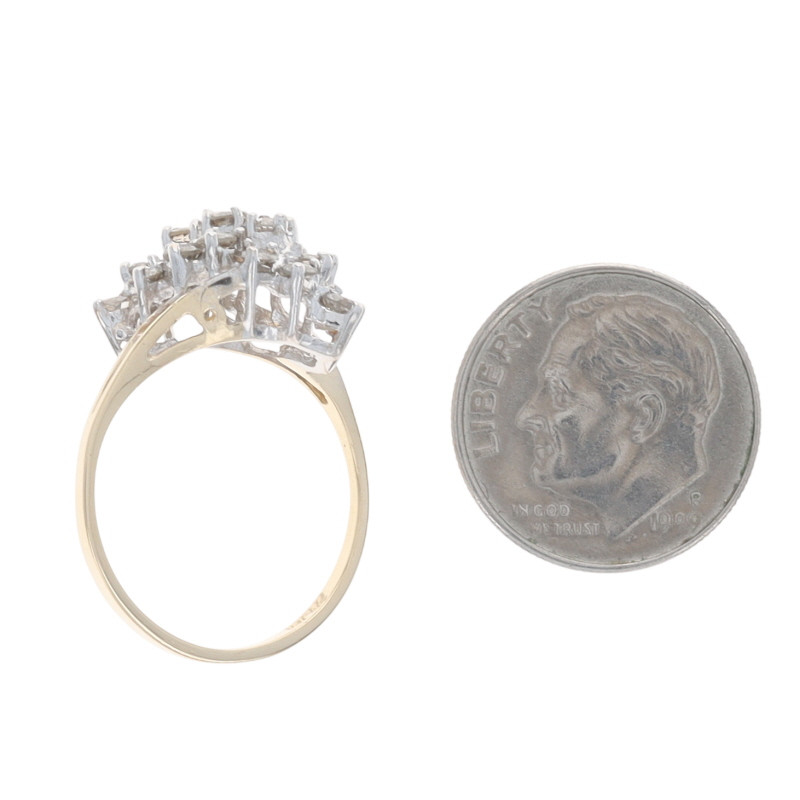 Yellow Gold Diamond Cluster Cocktail Bypass Ring 10k Rd 1.00ctw Floral Waterfall