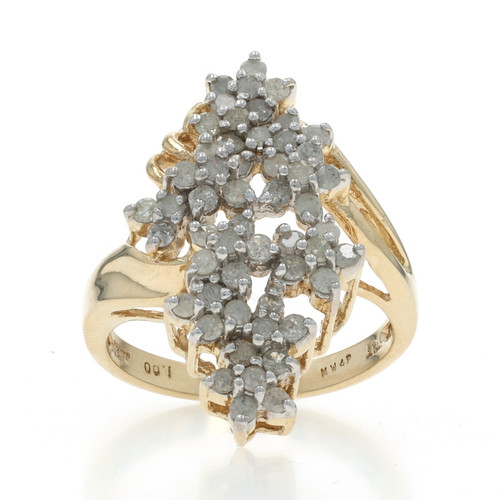 Yellow Gold Diamond Cluster Cocktail Bypass Ring - 10k Single 1.00ctw Floral