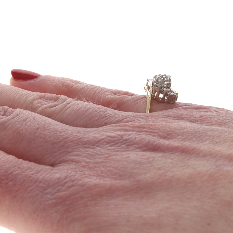Yellow Gold Diamond Cluster Cocktail Bypass Ring - 14k Round .50ctw Waterfall
