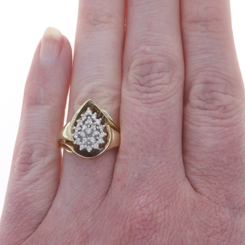 Yellow Gold Diamond Cluster Cocktail Ring - 10k Round Brilliant .25ctw Teardrop