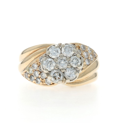 Yellow Gold Diamond Cluster Cocktail Ring - 14k Round Brilliant 1.50ctw