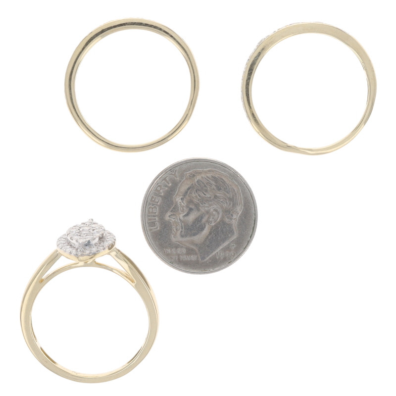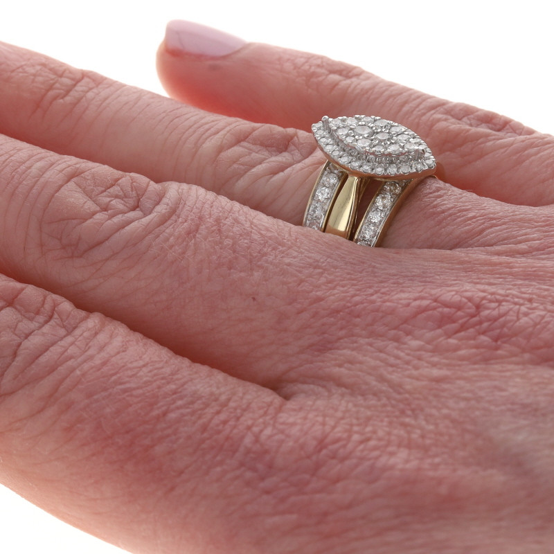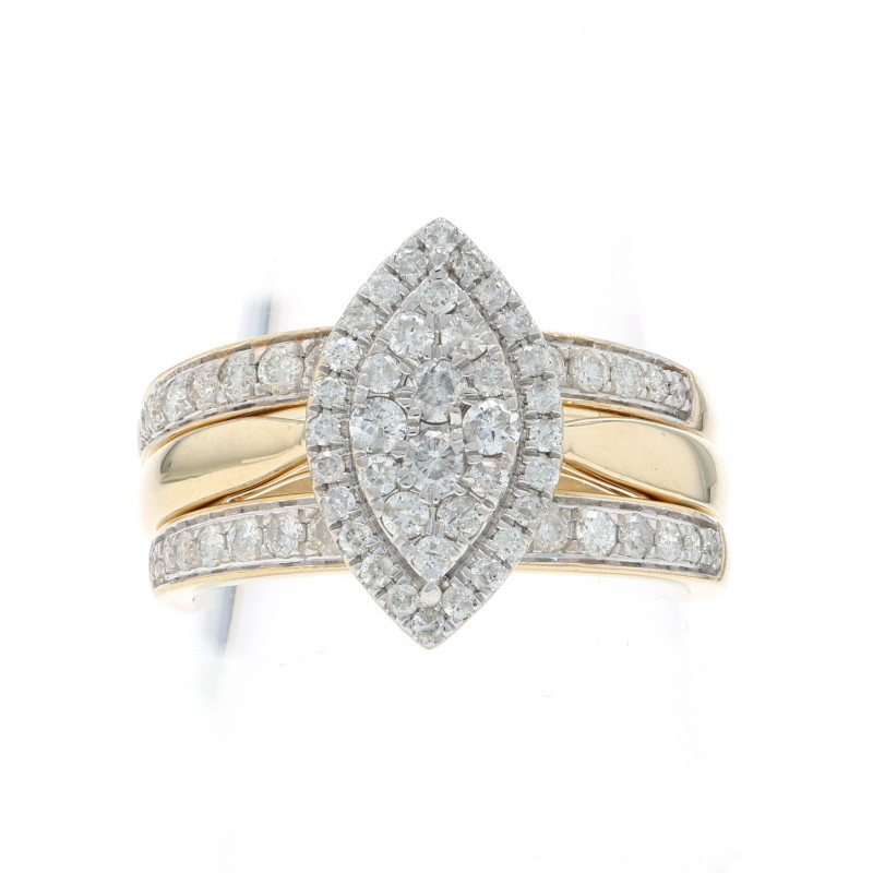 Yellow Gold Diamond Cluster Halo Engagement Ring & Wedding Bands 14k Rd 1.00ctw