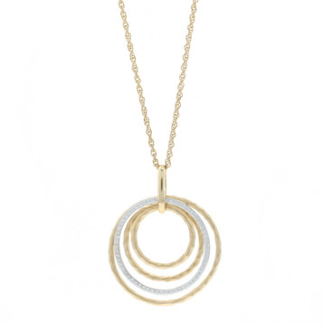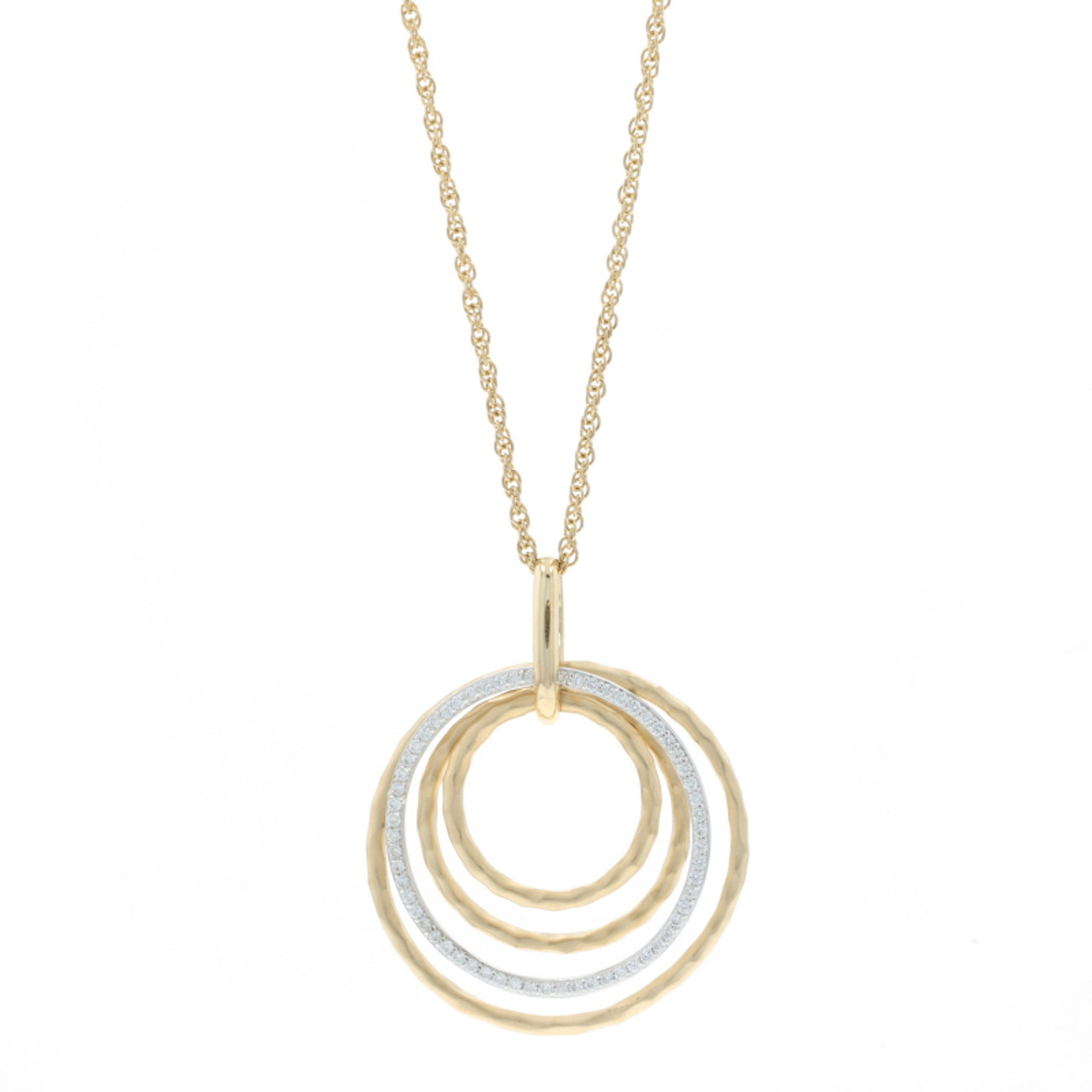 Yellow Gold Diamond Concentric Circle Pendant Necklace 18 1/4" 14k Round .22ctw