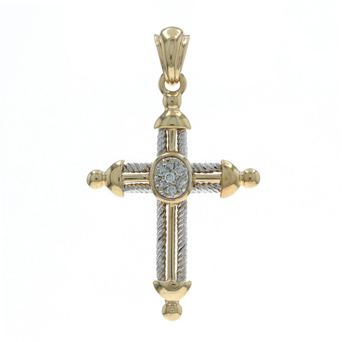 Yellow Gold Diamond Cross Pendant - 14k Round Brilliant .10ctw Faith