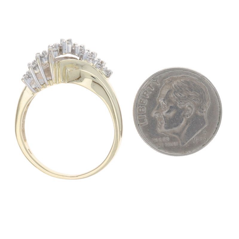 Yellow Gold Diamond Crossover Band - 10k Round & Baguette .50ctw Garland Ring
