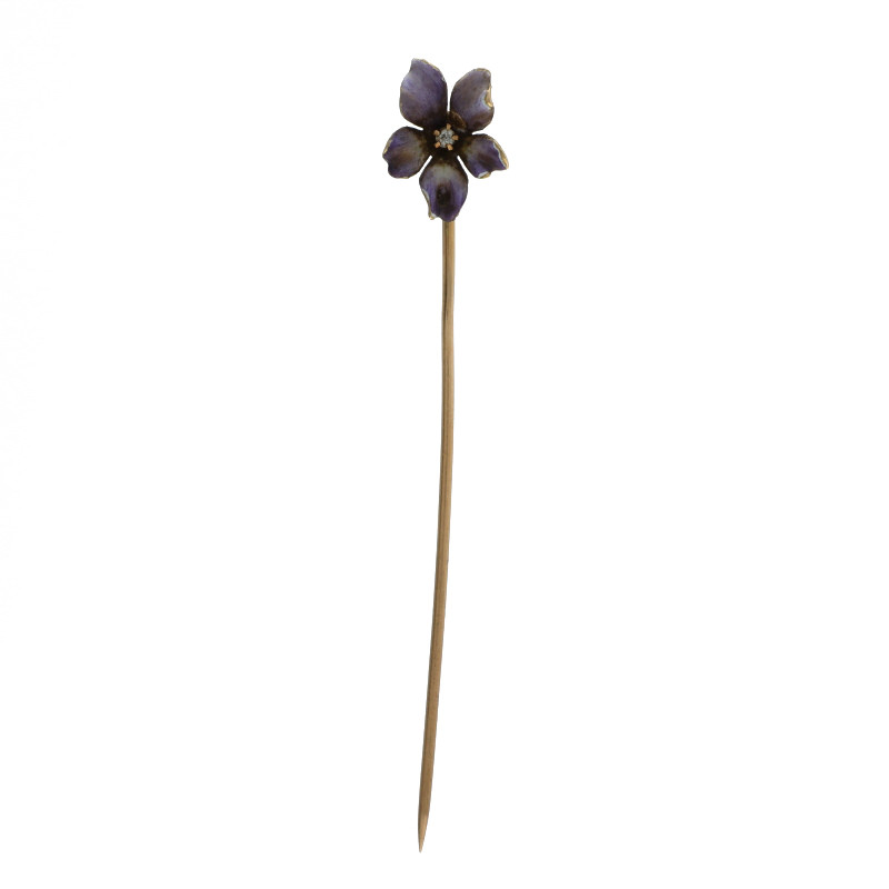 Yellow Gold Diamond Edwardian Flower Blossom Stickpin -14k Old Mine 1.00 Antique