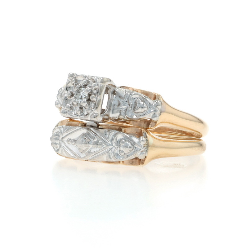 Yellow Gold Diamond Engagement Ring & Wedding Band - 14k Single Hearts