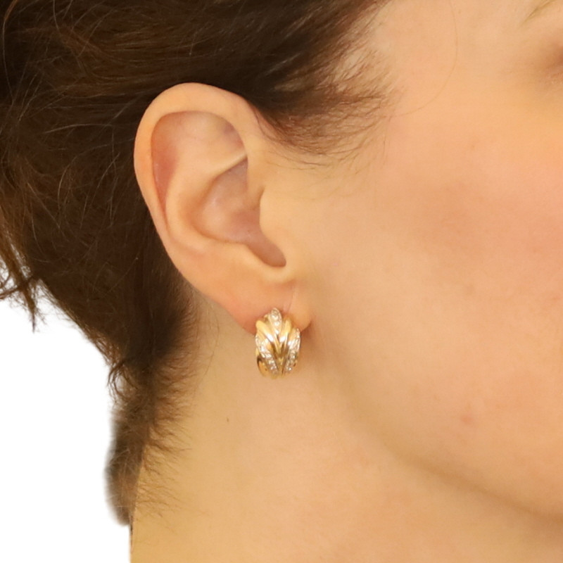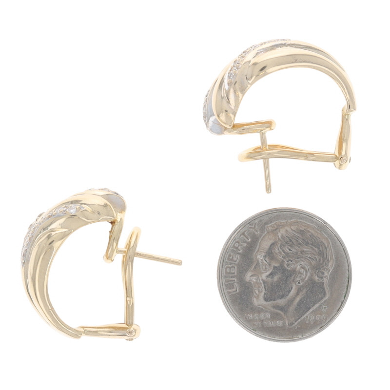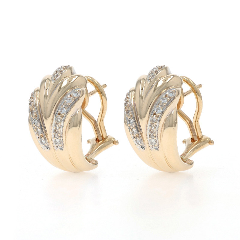 Yellow Gold Diamond Feather Fan J-Hoop Earrings 14k Round .15ctw Pierced
