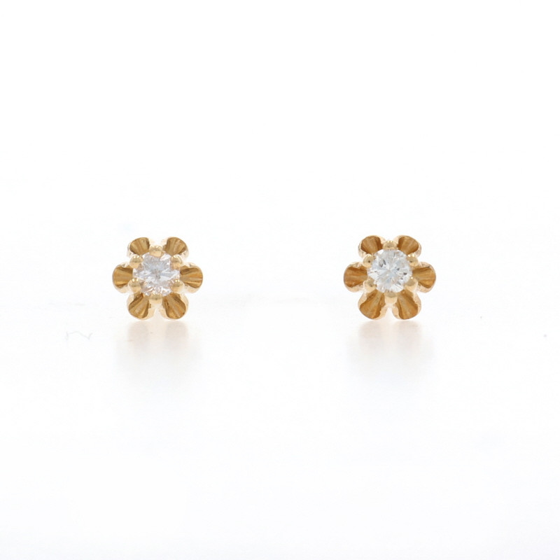 Yellow Gold Diamond Floral Stud Earrings - 14k Round Brilliant Buttercup Pierced