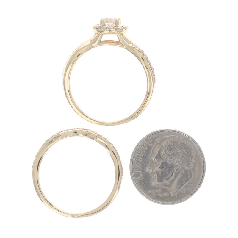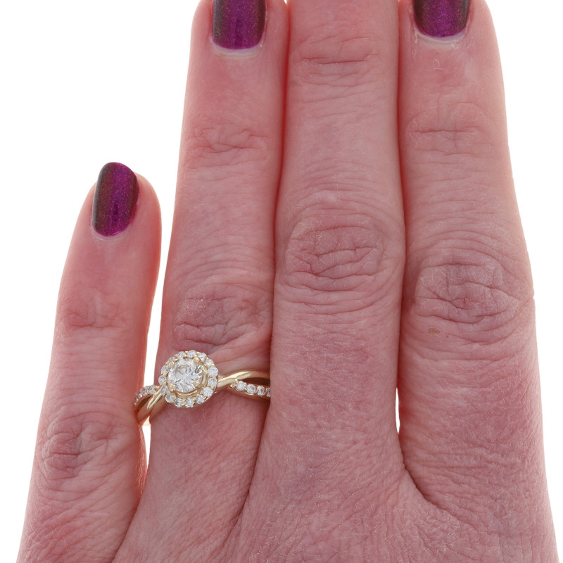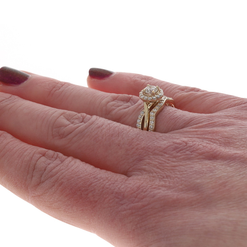 Yellow Gold Diamond Halo Engagement Ring & Wedding Band - 14k Round .95ctw
