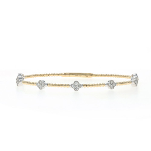 Yellow Gold Diamond Quatrefoil Station Flex Bangle Bracelet 6 3/4" - 14k .44ctw