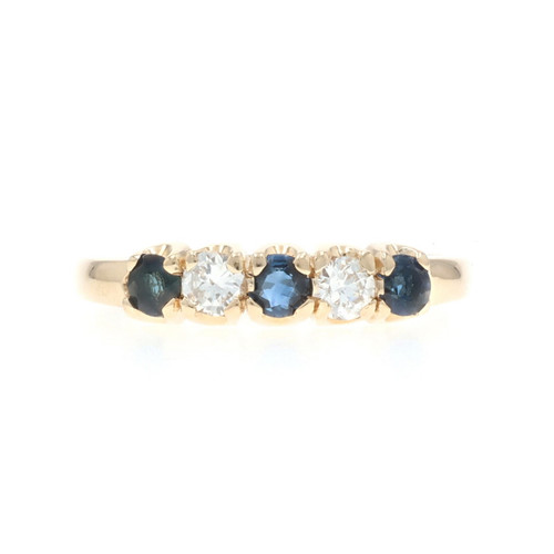 Yellow Gold Diamond Sapphire Five-Stone Ring - 14k Round Brilliant .62ctw
