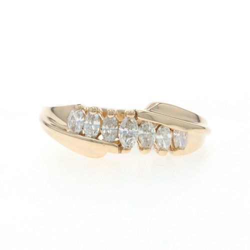 Yellow Gold Diamond Seven-Stone Bypass Band - 14k Marquise .50ctw Ring