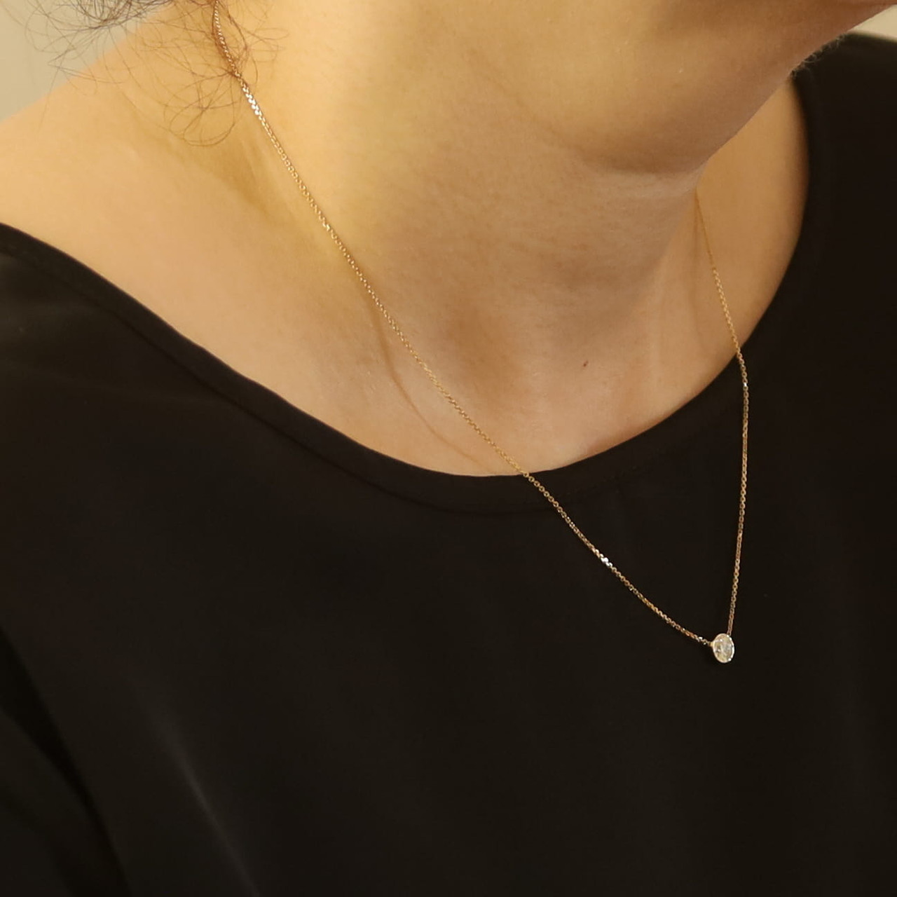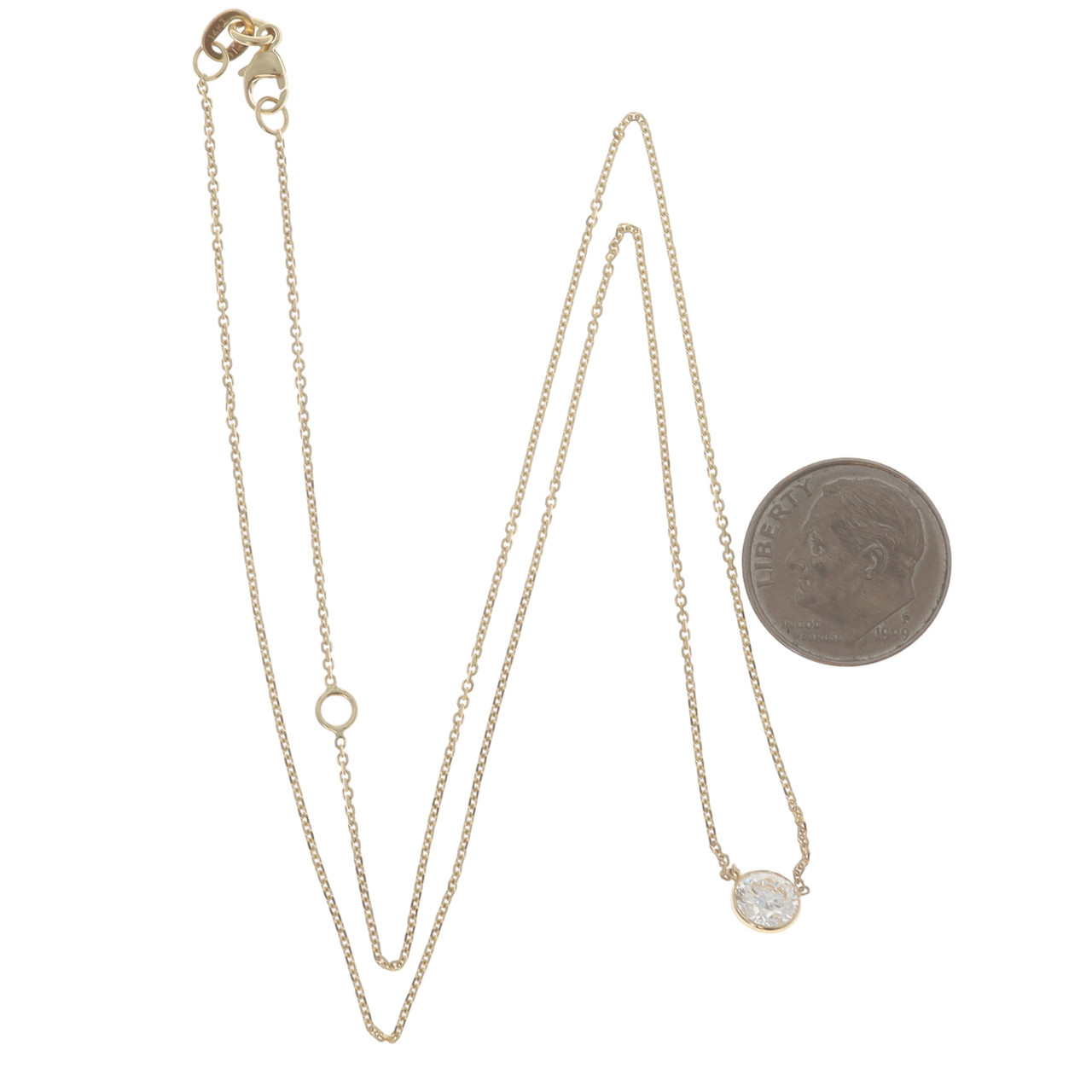 Yellow Gold Diamond Solitaire Bezel Necklace - 14k Round .70ct GIA