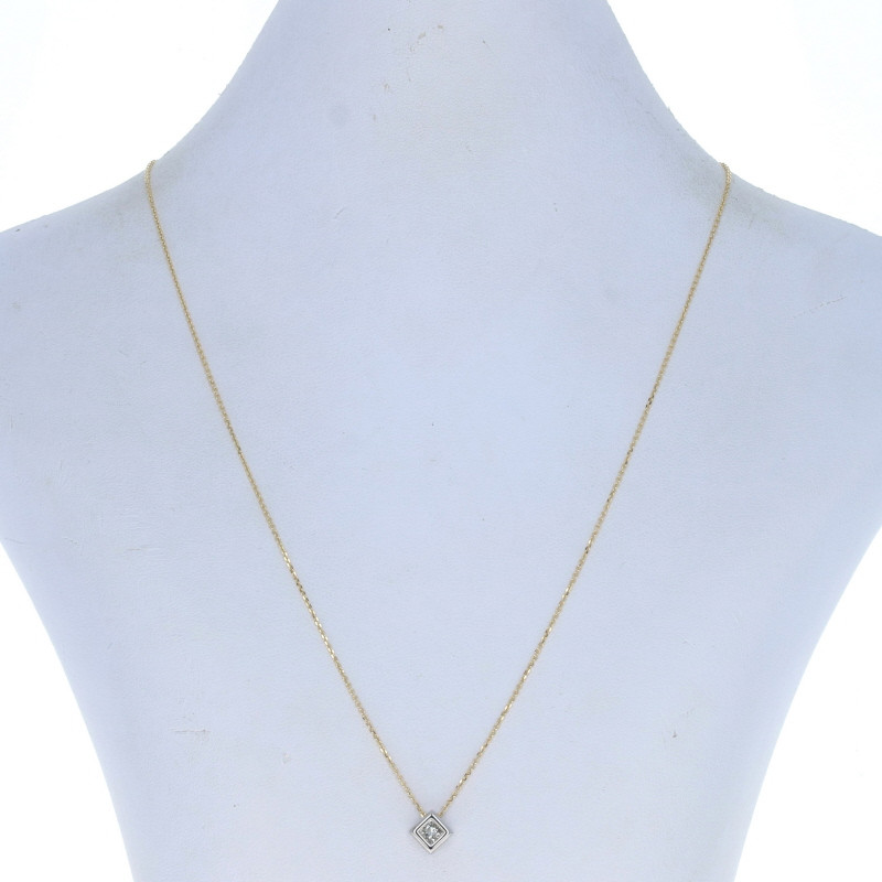 Yellow Gold Diamond Solitaire Pendant Necklace 17 3/4" - 14k Princess .35ct
