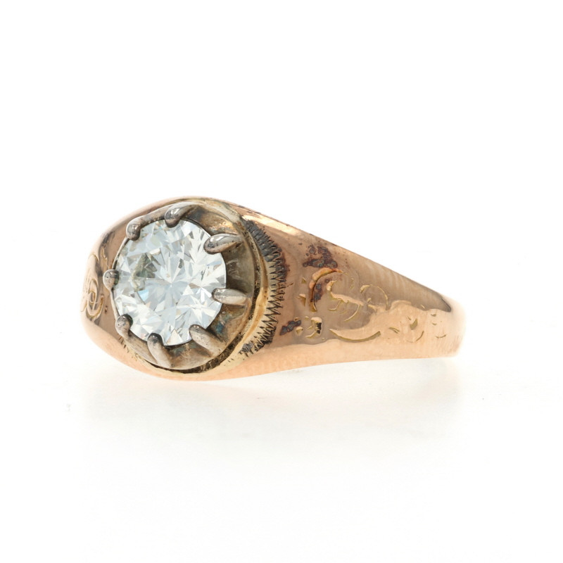Yellow Gold Diamond Solitaire Ring - 14k Round Brilliant .85ct Antique