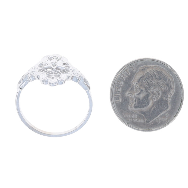 White Gold Diamond Solitaire Ring - 10k Single Cut Lace Star