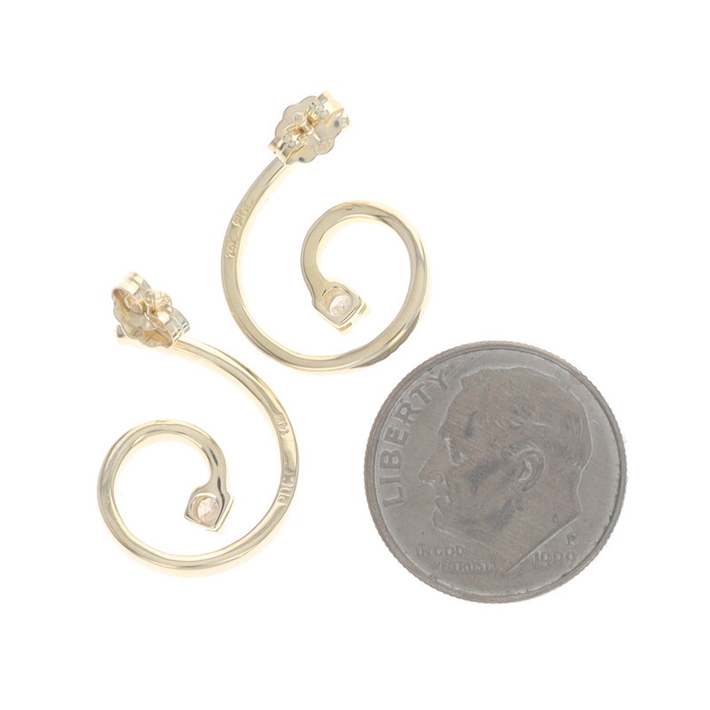 Yellow Gold Diamond Spiral Drop Earrings 14k Round .38ctw Swirl Pierced