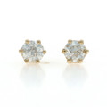 Yellow Gold Diamond Stud Earrings 14k European .90ctw Pierced