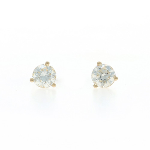 Yellow Gold Diamond Stud Earrings - 14k Round Brilliant .63ctw Pierced