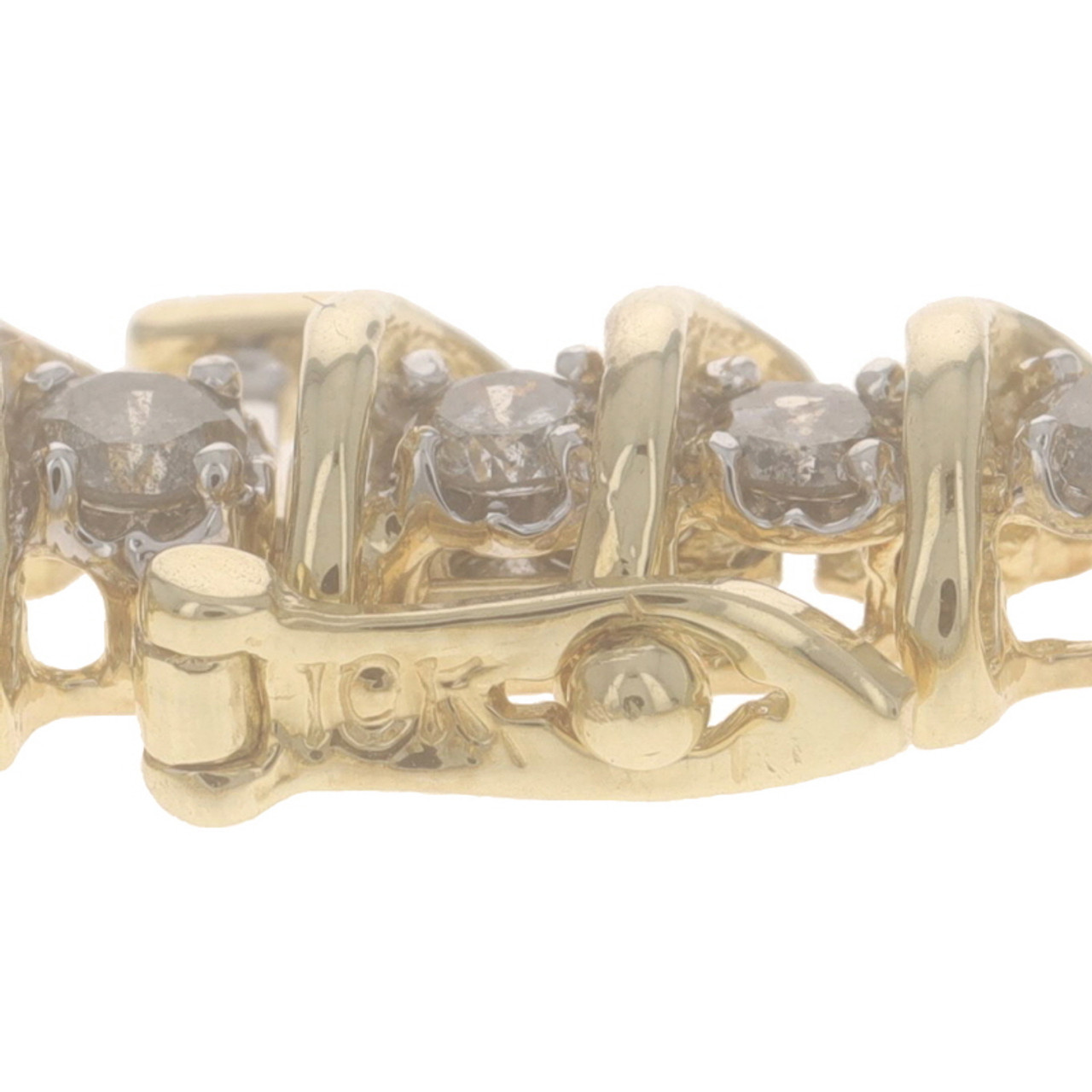 Yellow Gold Diamond Tennis Link Bracelet 7" - 10k Round Brilliant 4.00ctw