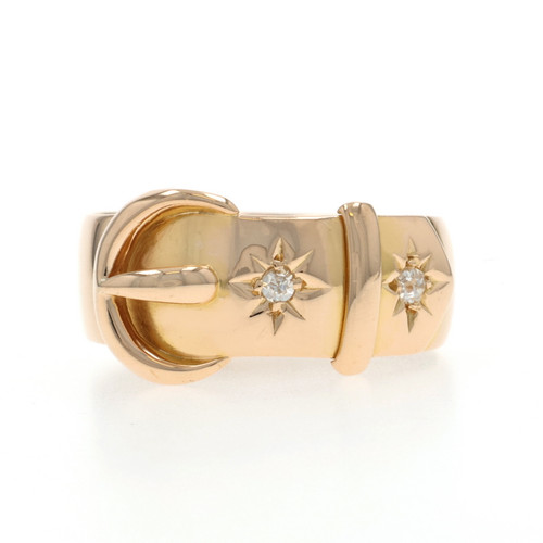 Yellow Gold Diamond Victorian Starburst Buckle Band - 18k Old Mine Antique Ring