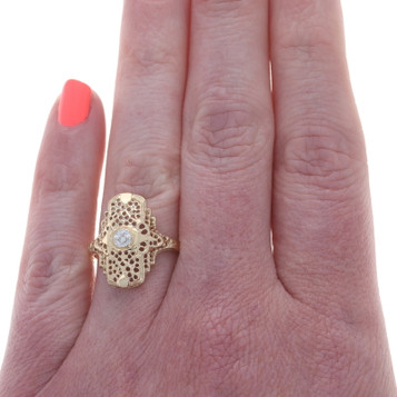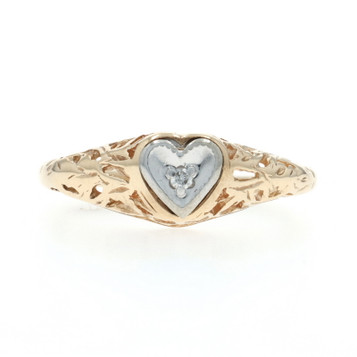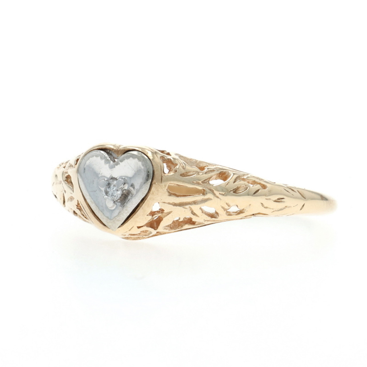 Yellow Gold Diamond Vintage Heart Solitaire Ring - 10k Round Brilliant Love