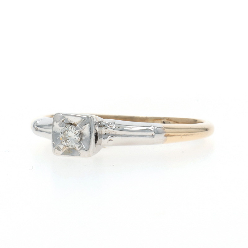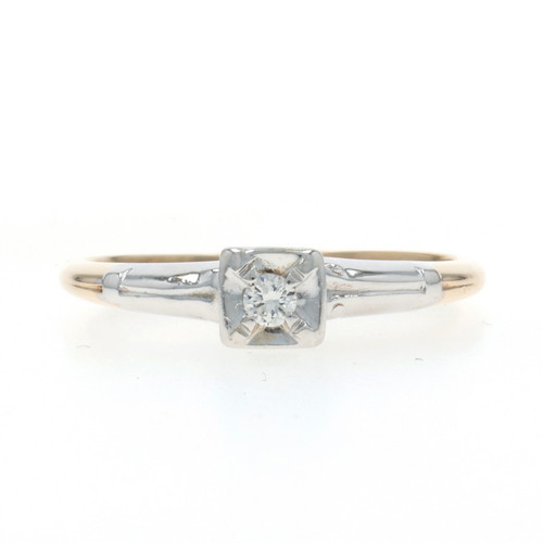 Yellow Gold Diamond Vintage Solitaire Engagement Ring - 14k Round Brilliant Cut