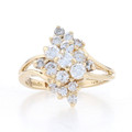 Yellow Gold Diamond Waterfall Cluster Cocktail Bypass Ring - 14k Round .68ctw