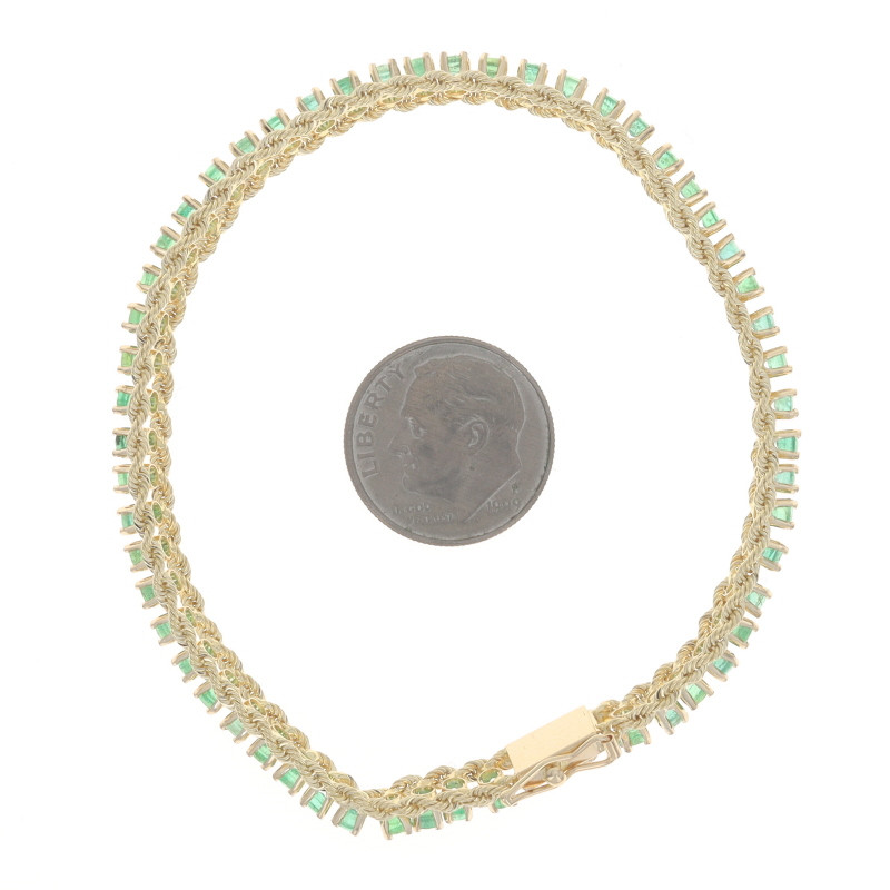 Yellow Gold Emerald Chain Bracelet 6 1/2" 14k Round 3.78ctw