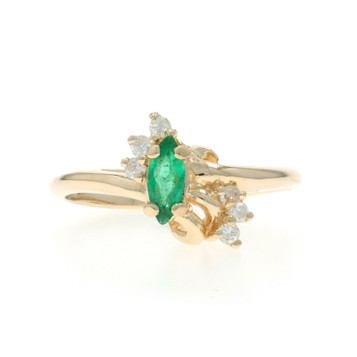 Yellow Gold Emerald Diamond Bypass Ring - 14k Marquise .39ctw