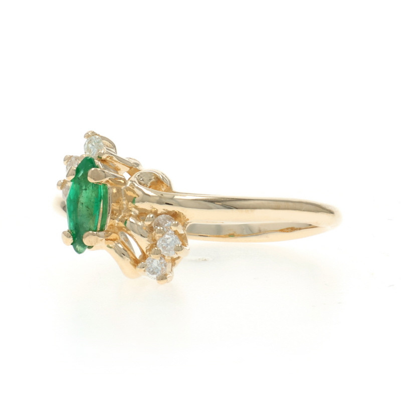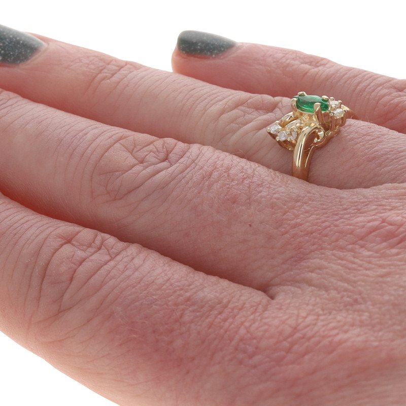 Yellow Gold Emerald Diamond Bypass Ring - 14k Marquise .39ctw
