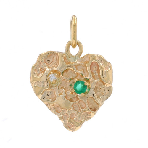 Yellow Gold Emerald Diamond Heart Two-Stone Pendant - 10k Round Love