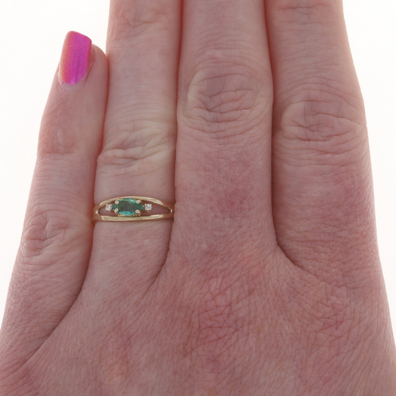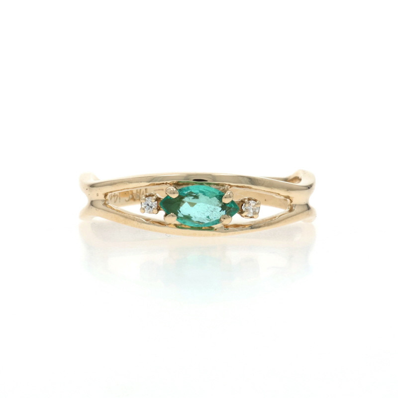 Yellow Gold Emerald Diamond Ring - 14k Marquise .32ctw SZ 6