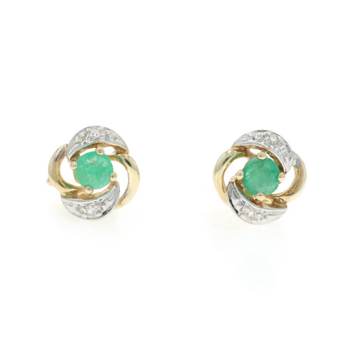 Yellow Gold Emerald Diamond Stud Earrings - 18k Round 4.26ctw Pierced