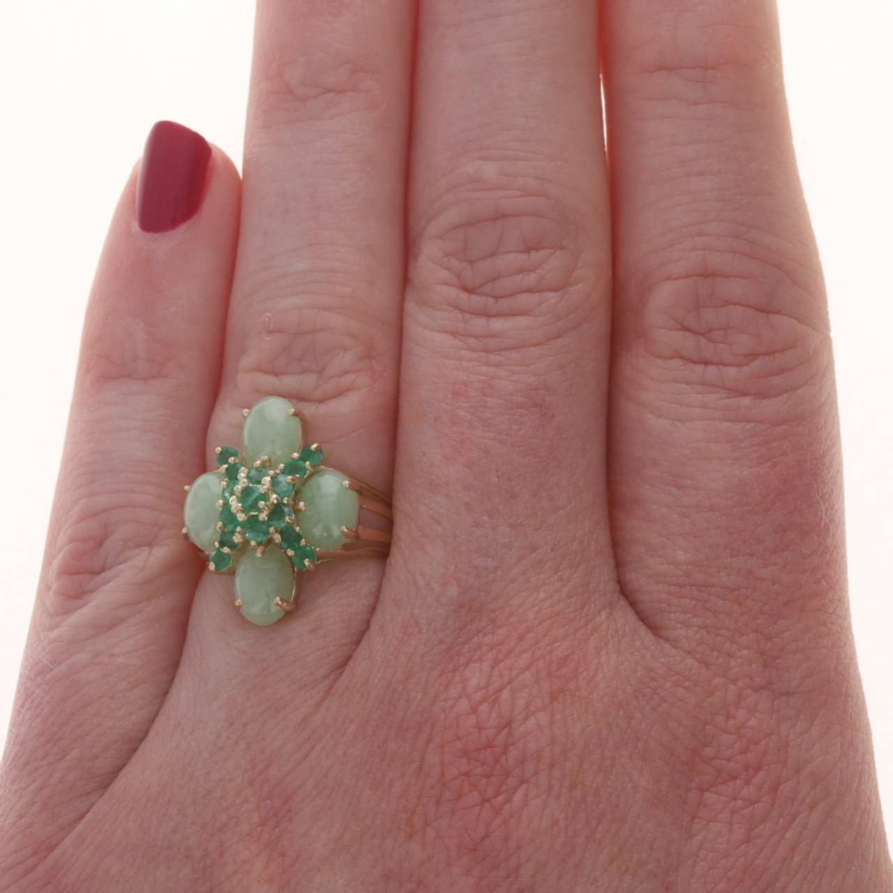 Yellow Gold Emerald Jadeite Cluster Cockail Ring 14k Round 3.72ctw Floral Burst