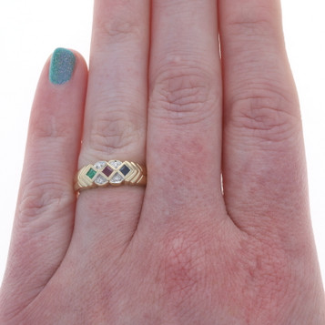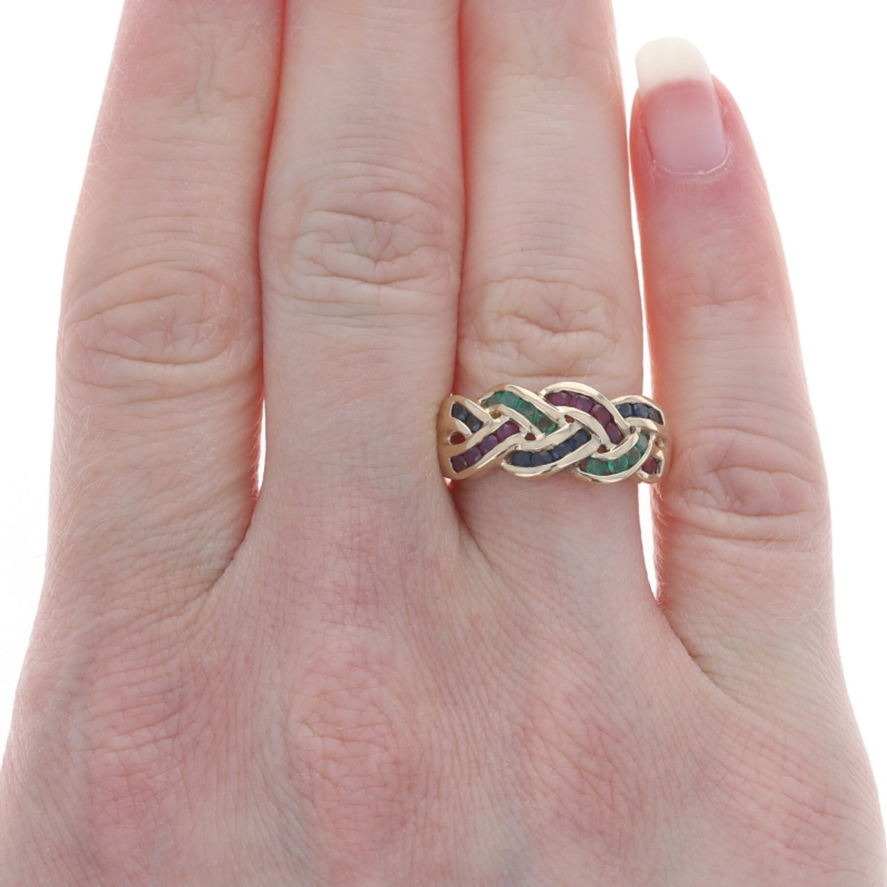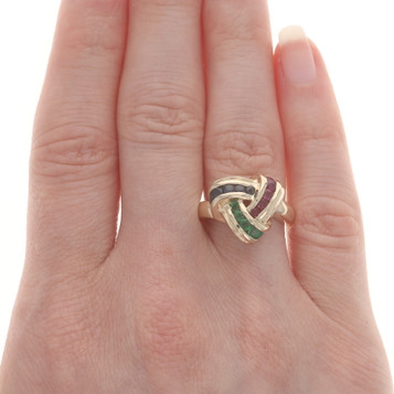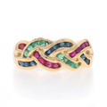 Yellow Gold Emerald Sapphire Ruby Cocktail Band 10k Rd 1.22ctw Braid Ring Sz7