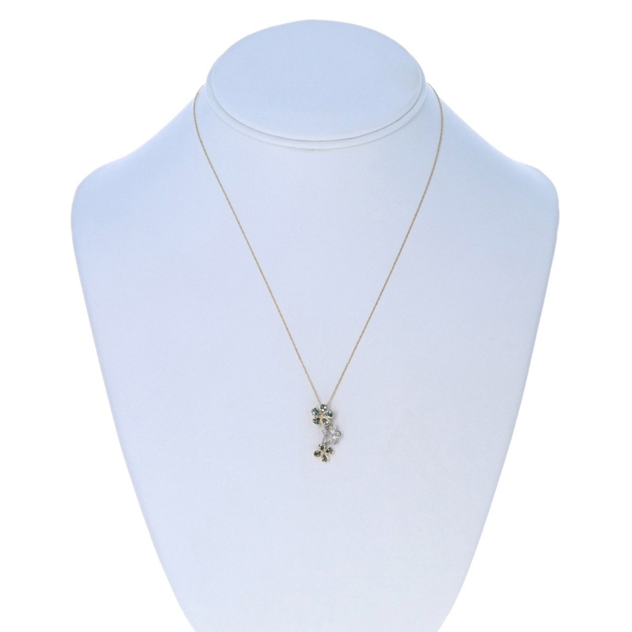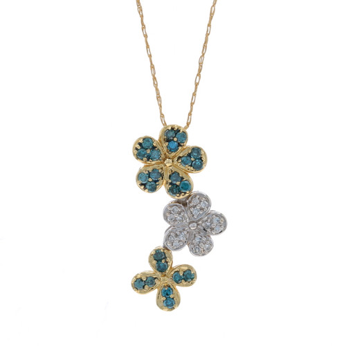 Yellow Gold Fancy Blue Diamond Flower Trio Necklace 17" - 10k .25ctw Treated