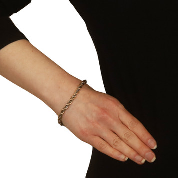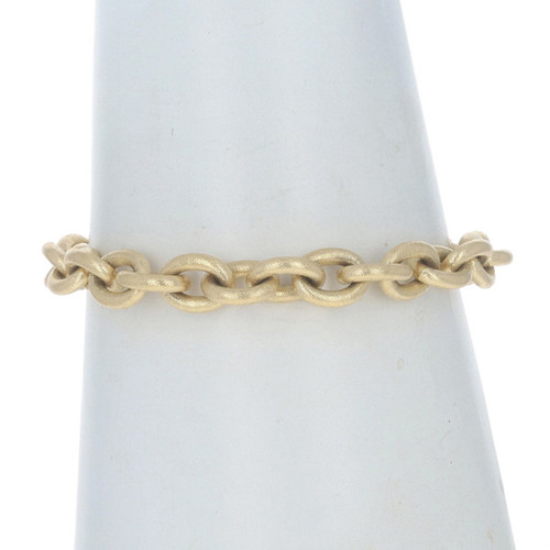 Yellow Gold Fancy Cable Chain Bracelet 8" - 18k Crosshatch-Textured