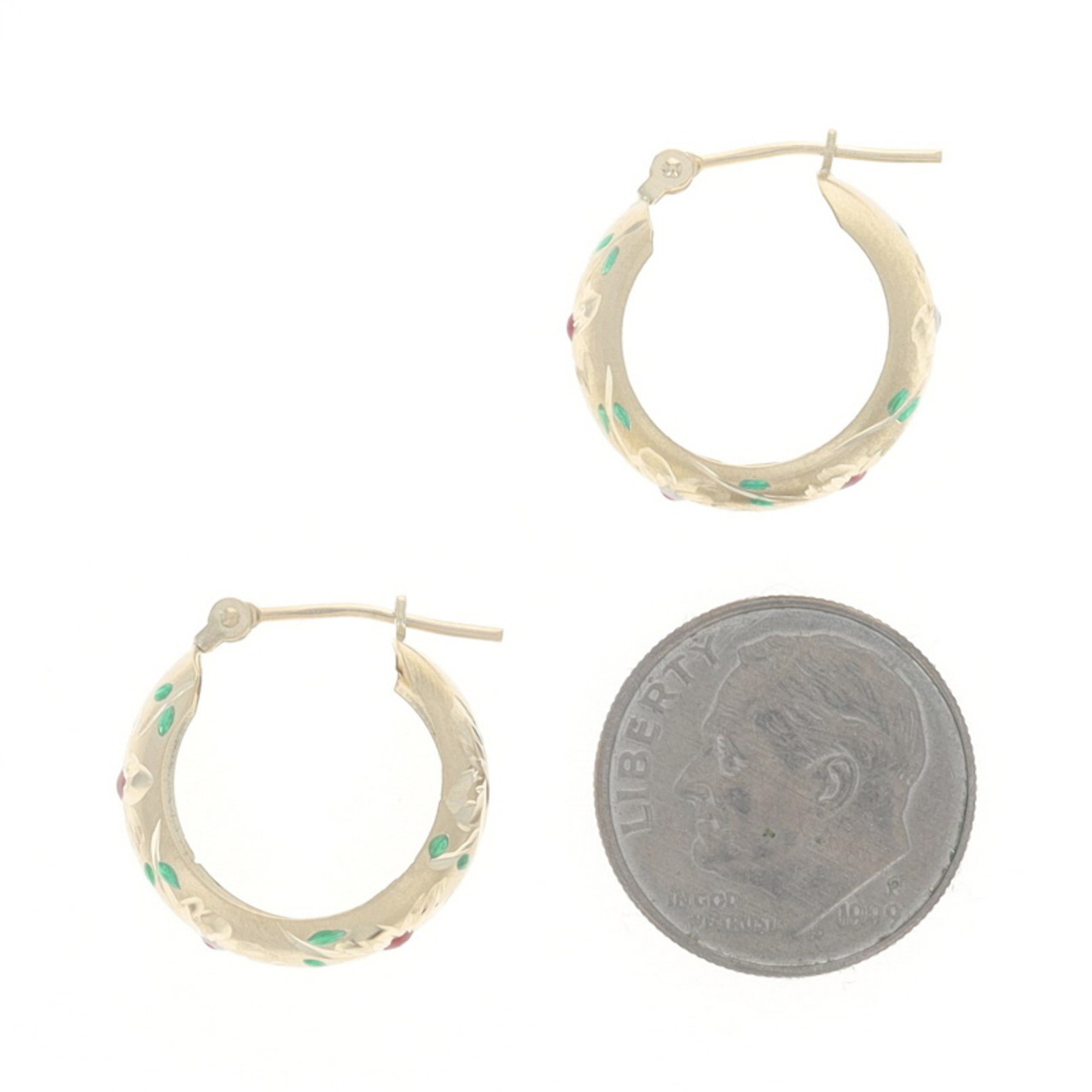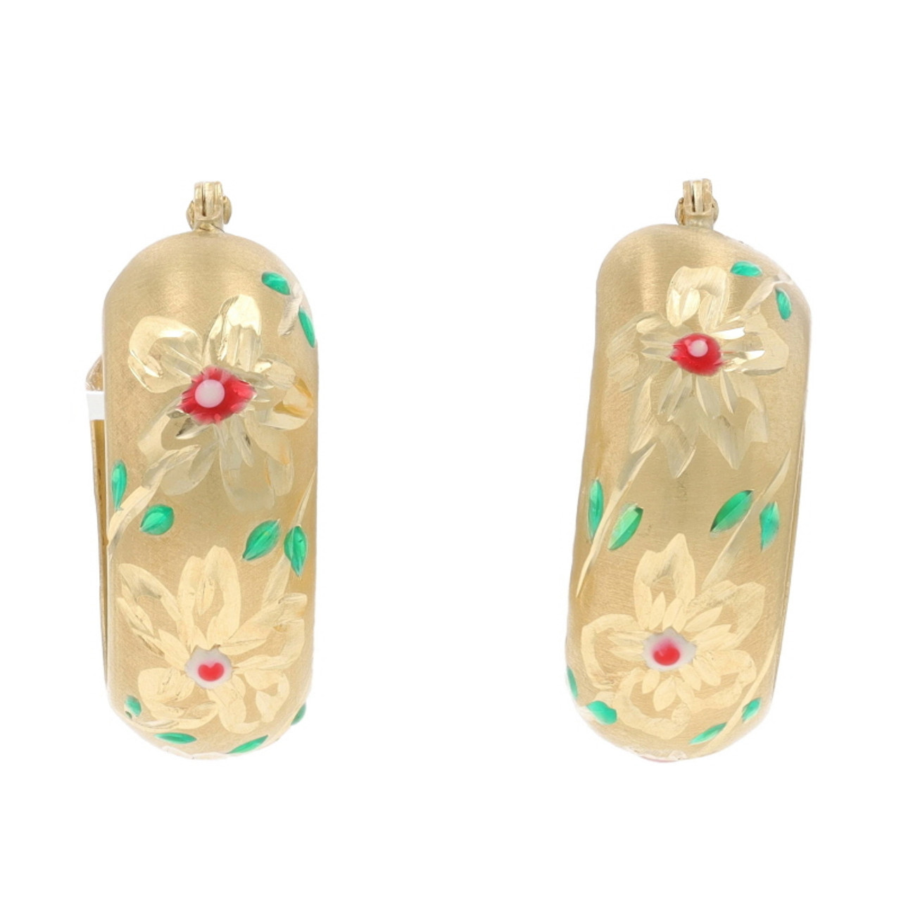 Yellow Gold Flower Hoop Earrings 14k Pierced
