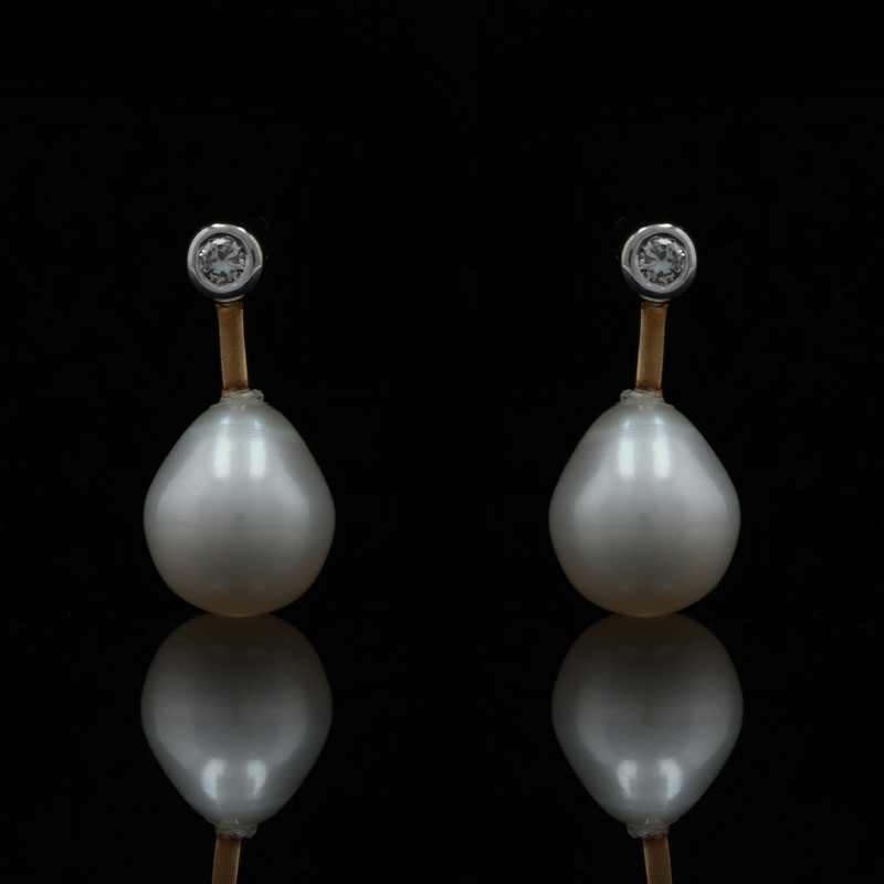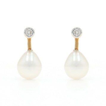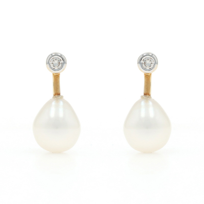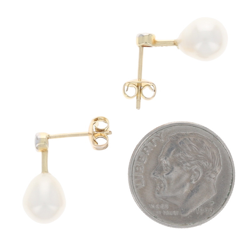 Yellow Gold Freshwater Pearl Diamond Drop Earrings - 14k Pierced