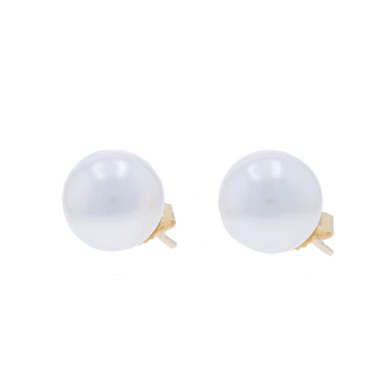 Yellow Gold Freshwater Pearls Stud Earrings 14k Round Pierced