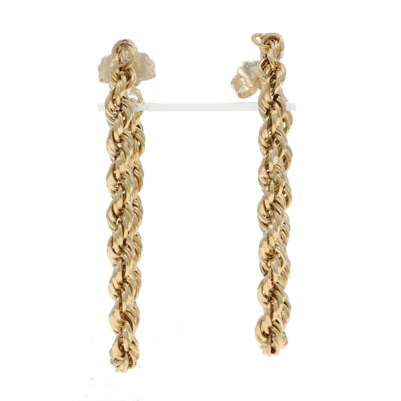 Yellow Gold Front-Back Rope Chain Earrings - 14k Pierced
