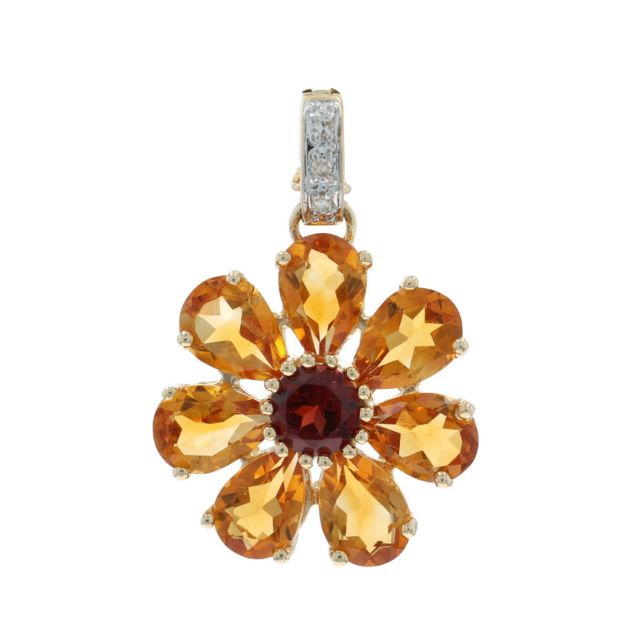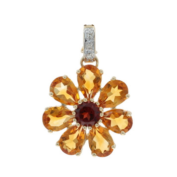 Yellow Gold Garnet Citrines Diamond Marigold Pendant 14k Round 5.17ctw Blossom