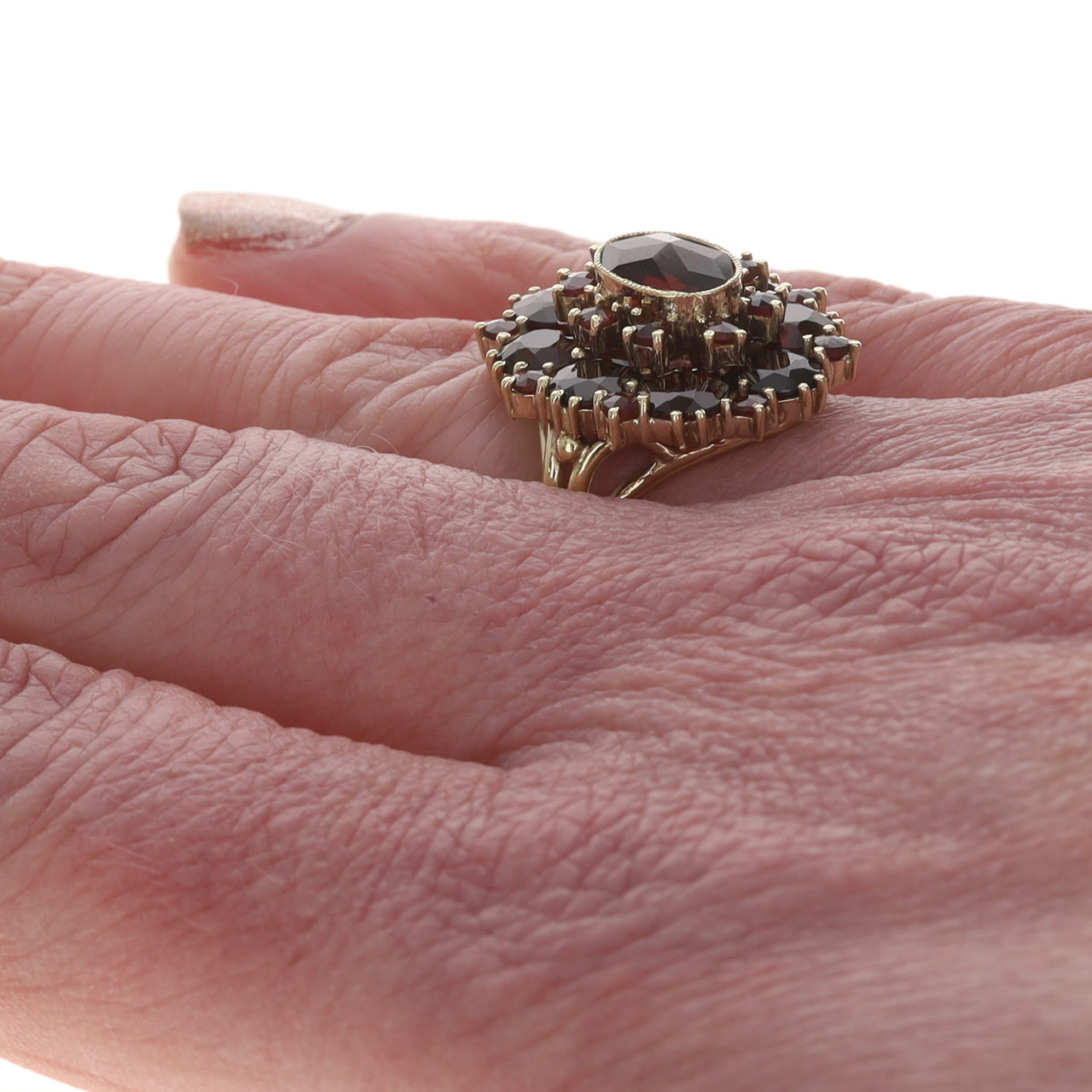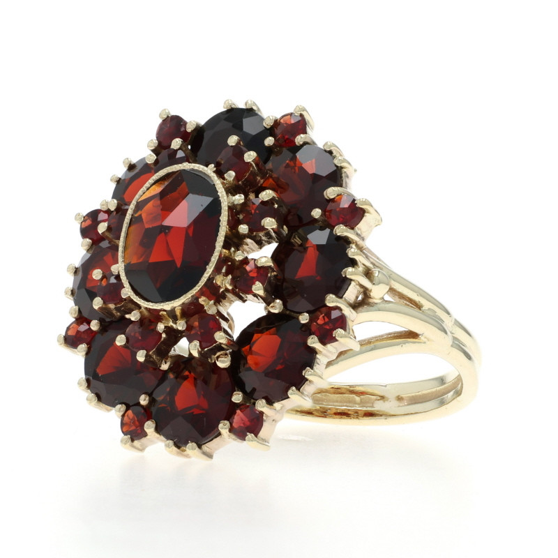 Yellow Gold Garnet Cluster Cocktail Halo Ring 14k Oval Round Rose 7.00ctw Floral